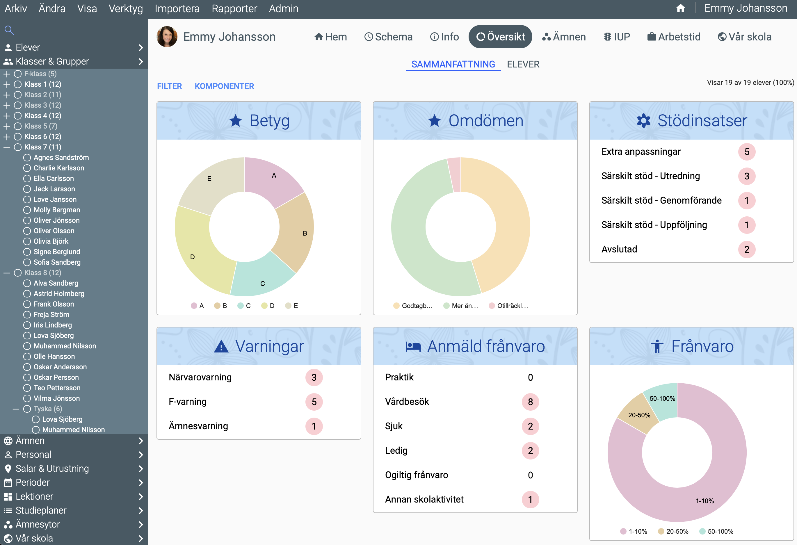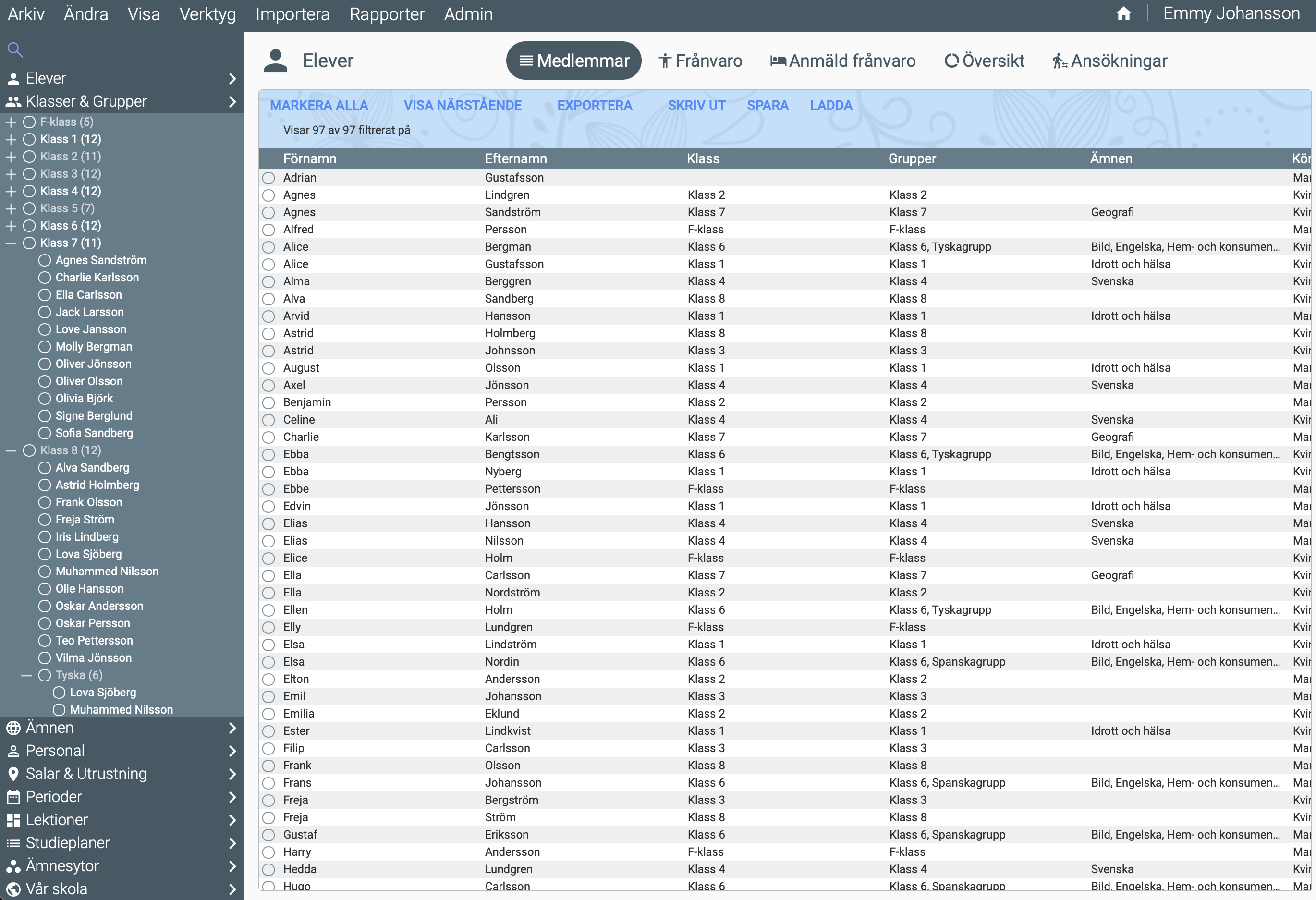 elever per klass eller grupp, vilket speciellt kan vara hjälpfullt då det är många nya ansikten vid årets början.