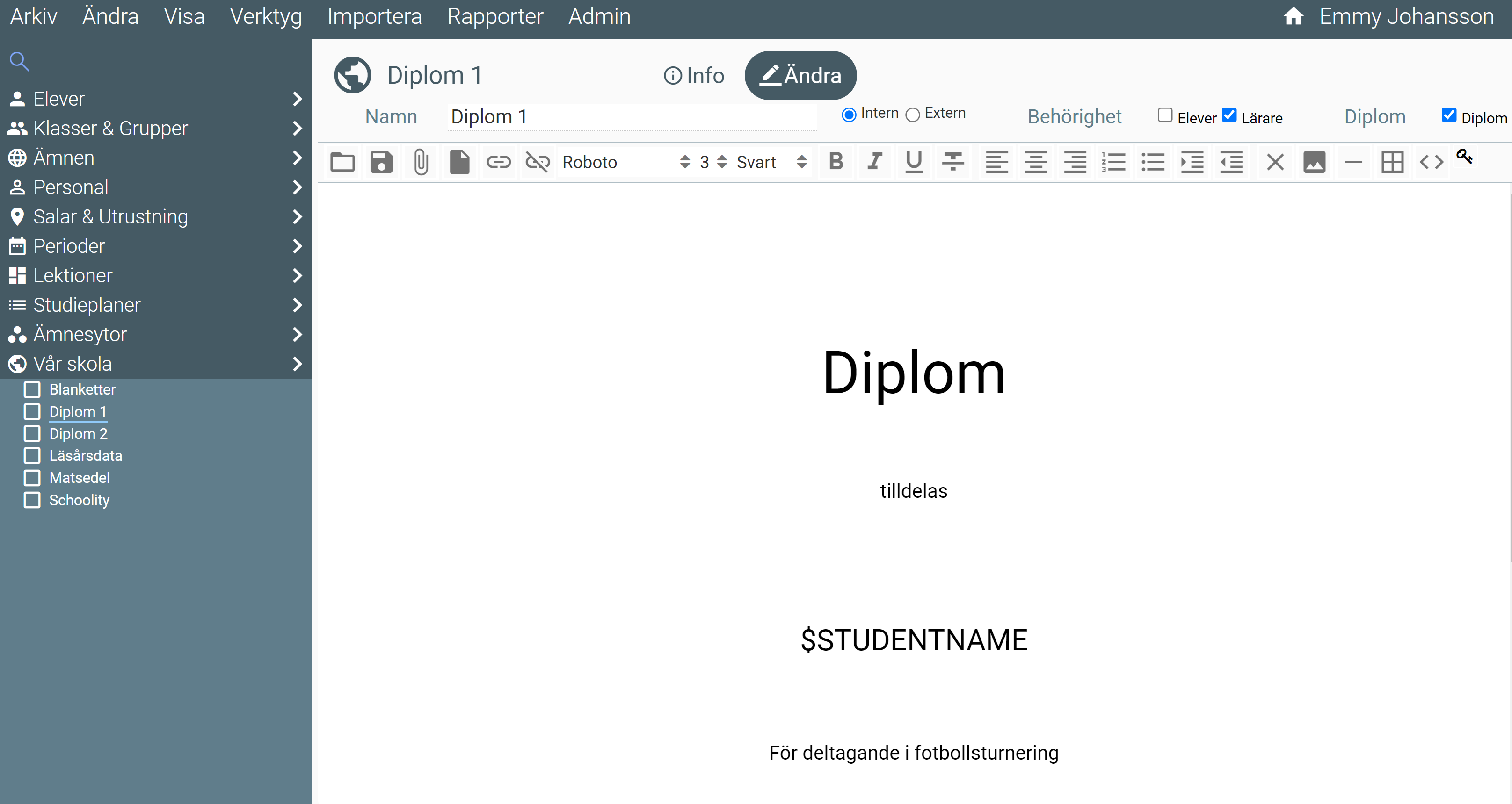 - Här kan man sedan säga att sidan ska fungera som ett diplom genom att fylla i checkboxen "Diplom" längst till höger.