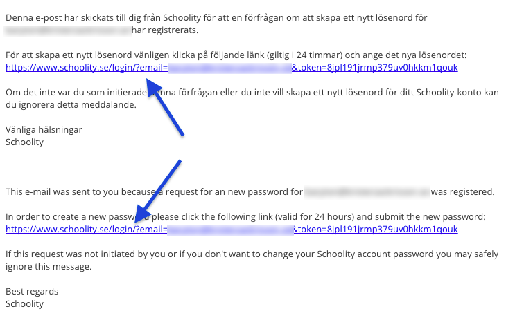 Gå till din e-post där du nu bör ha fått ett meddelande från Schoolity som ser ut som nedan. Klicka på länken i mailet.