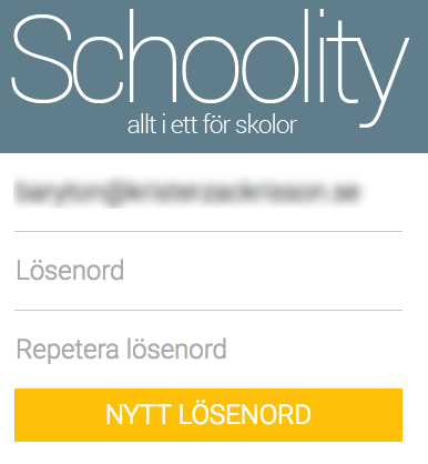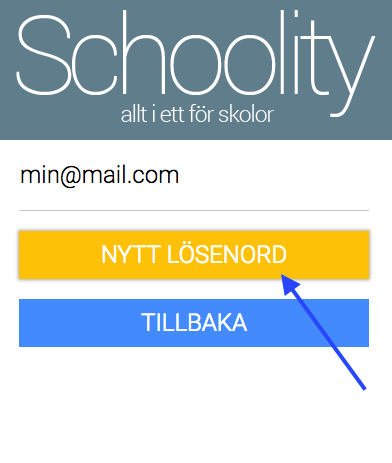 Skriv in den e-postadress som är registrerad hos skolan och klicka NYTT LÖSENORD igen.