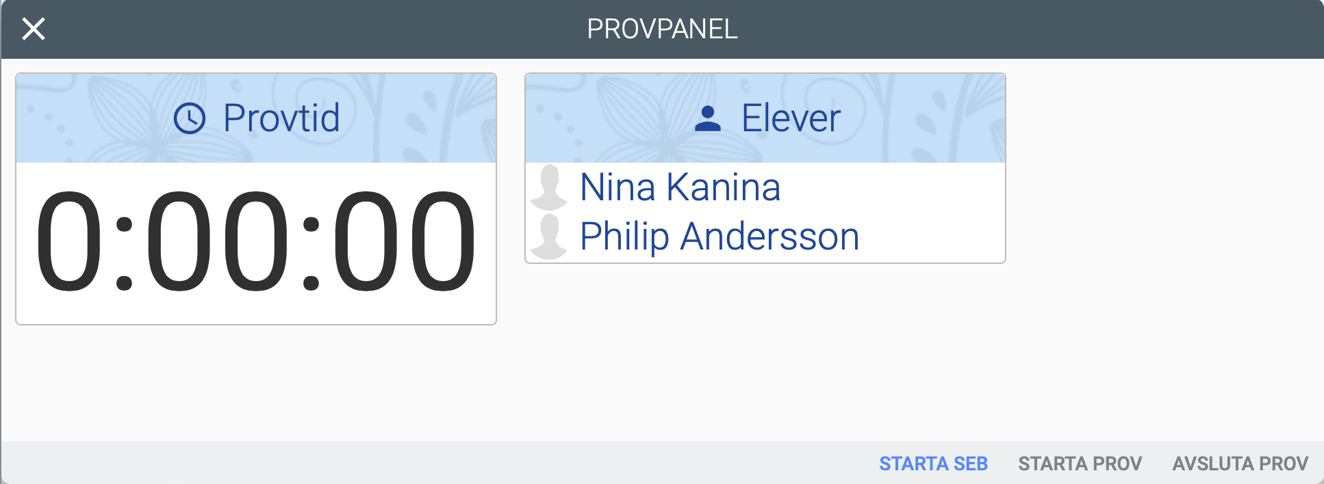 - PROVPANEL - Går vidare till Provpanelen där läraren kan starta provet.