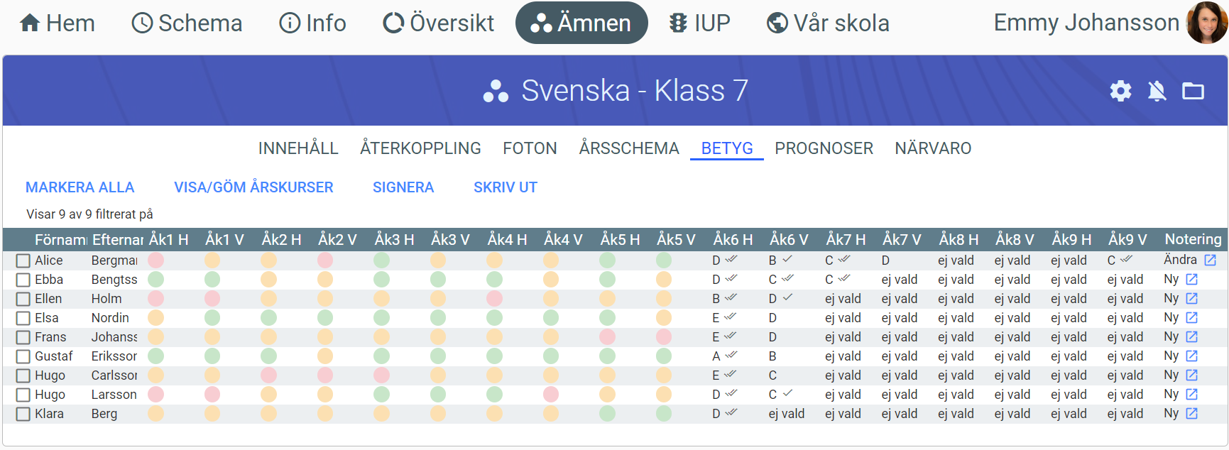 - Betyget för denna elev är nu satt. Fortsätt till de andra eleverna och gör likadant.