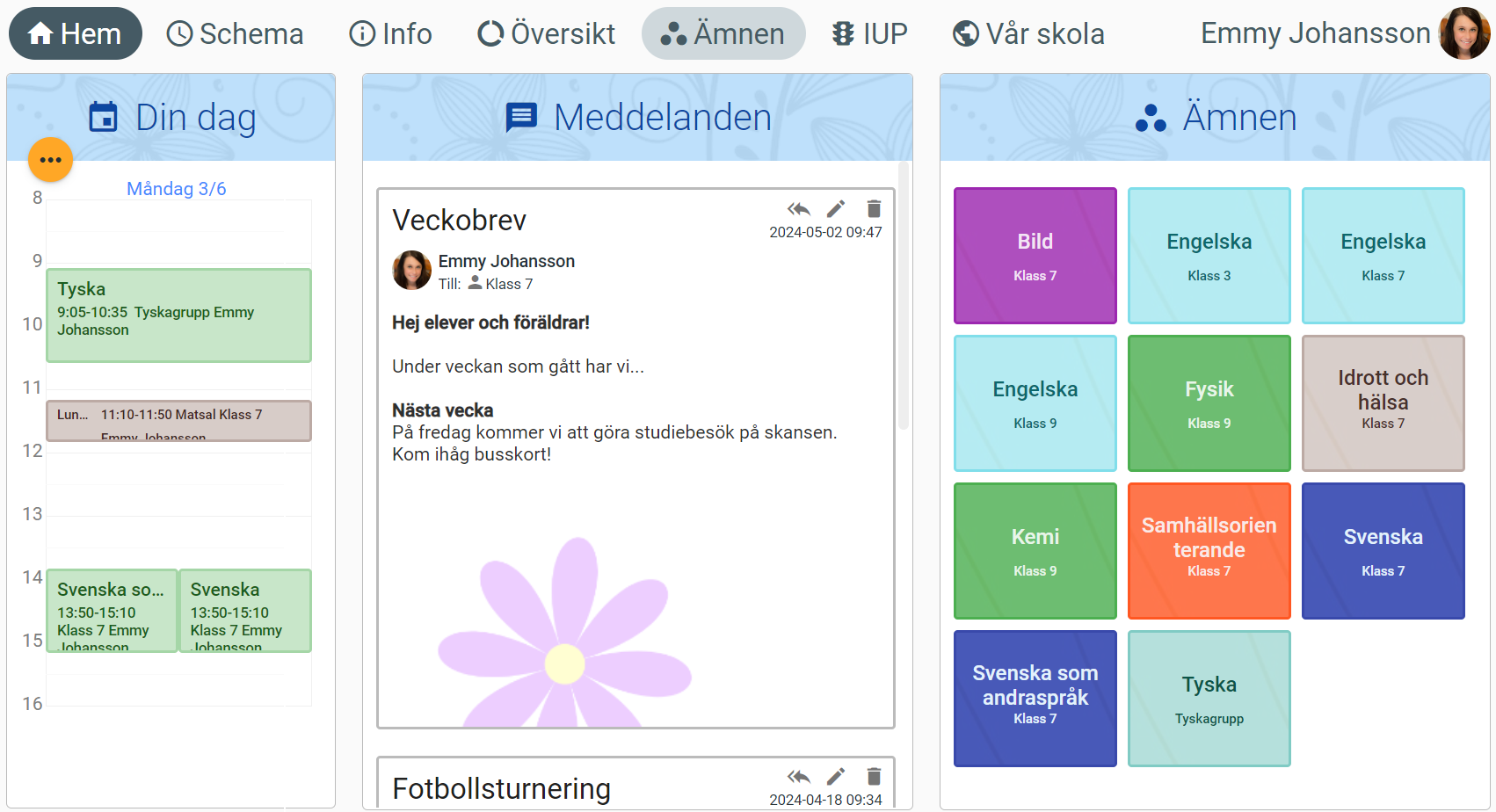 - Klicka på önskad ämnesruta eller på fliken "Ämnen" och välj önskat ämne.