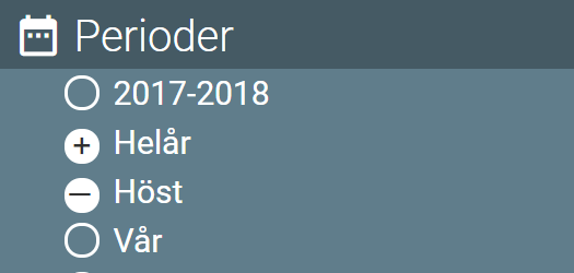 För att lägga till "I perioder" klicka en gång på bollen bredvid önskad period, om "Ej i period" önskas, klicka 2 gånger på bollen i trädet.