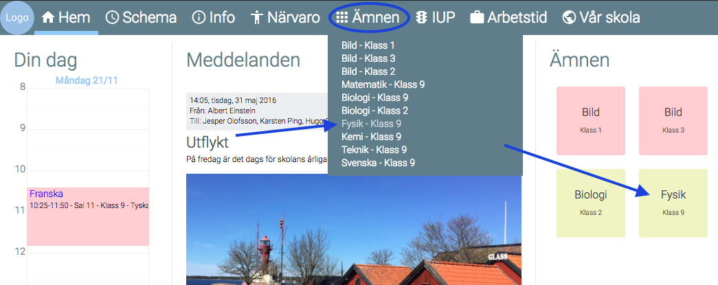 Klicka på önskad ämnesruta eller på fliken "Ämnen" och välj önskat ämne.