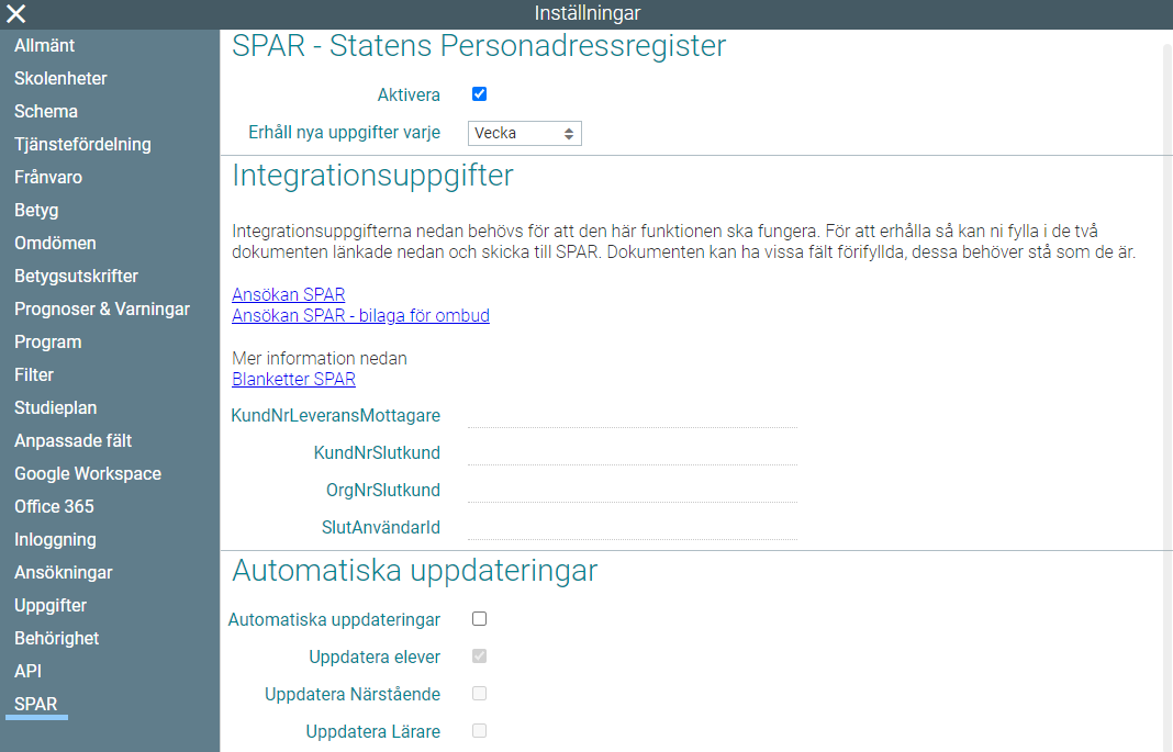 För att integrera Schoolity med SPAR så behöver en blankett fyllas i och skickas till SPAR.