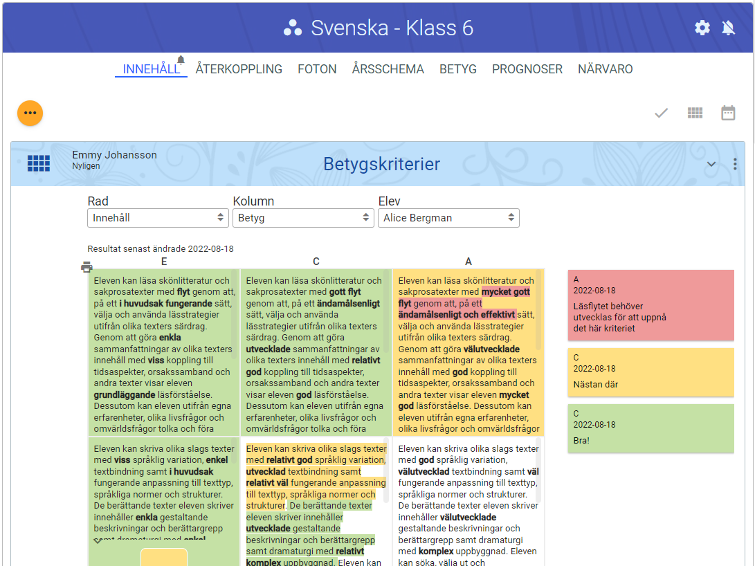 fiber_manual_recordUppgifter kan kopplas till matrisen för individuell bedömning