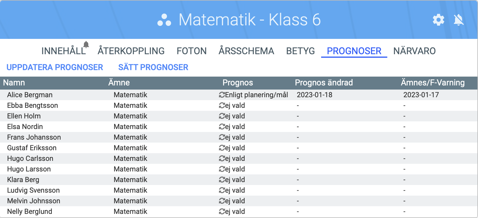 Prognoser visar på ett tidigt stadium hur det går för eleven.